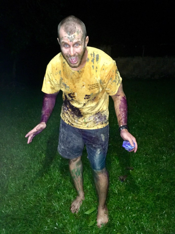 -Traditionally they used to use over-ripe to borderline fermented fruit such as bananas or papaya… then they added used cooking oil… now, anything goes! They love putting paint in bottles and squirting it at you… it does NOT come off! Clothes get ruined, you are dirty beyond a simple shower, and there are non-stop laughs and smiles as you participate. We might have added some things into our mix like: cement… hot sauce… etc. And they relished at the opportunity to get back at us.